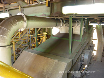 鐵礦干選車間皮帶輸送機(jī)、破碎機(jī)、振動(dòng)篩除塵系統(tǒng)管道安裝完畢,粉塵控制和收集效果很好。