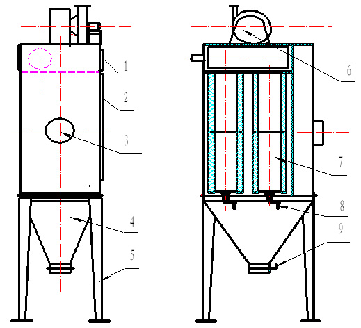 濾筒除塵器是一種比較先進(jìn)的過濾設(shè)備,優(yōu)點是除塵效率高,設(shè)備體積小,過濾面積大,過濾風(fēng)速低,噪音低等多種優(yōu)點.被過濾粉塵僅停留在濾料超細(xì)纖維層的外表,所以大大減少了過濾阻力,節(jié)省耗電30%以上,節(jié)能效果顯著,并且清灰十分徹底.同時也解決了超細(xì)粉塵,纖維性粉