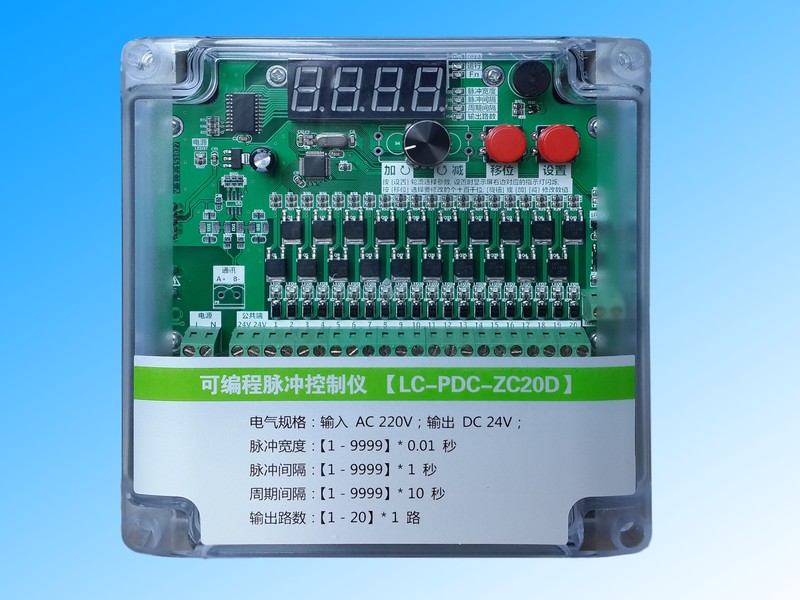 脈沖袋式除塵器控制儀 LC-PDC-ZC20D (在線式 20路 ),此款控制儀電壓有24V和220V兩款,購買時(shí)請告知客服選用電壓,以免為您造成不必要的損失。此款脈沖控制儀輸出路數(shù)可調(diào),凡是所控脈沖閥數(shù)量為20個(gè)以下,全部可以使用。