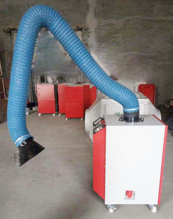 焊煙除塵器主要部件包括:萬向吸塵臂、耐高溫吸塵軟管、吸塵罩(帶風(fēng)量調(diào)節(jié)閥)、阻燃O過濾筒、帶剎車的新式腳輪、風(fēng)機(jī)、電機(jī)以及電控系統(tǒng)等
