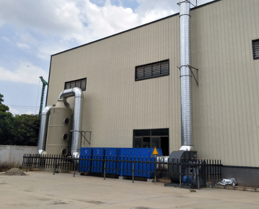 噴漆廢氣處理工藝:噴漆廢氣→水簾柜→水噴淋廢氣處理塔→UV光解設備→活性炭吸附器→離心風機→達標排放