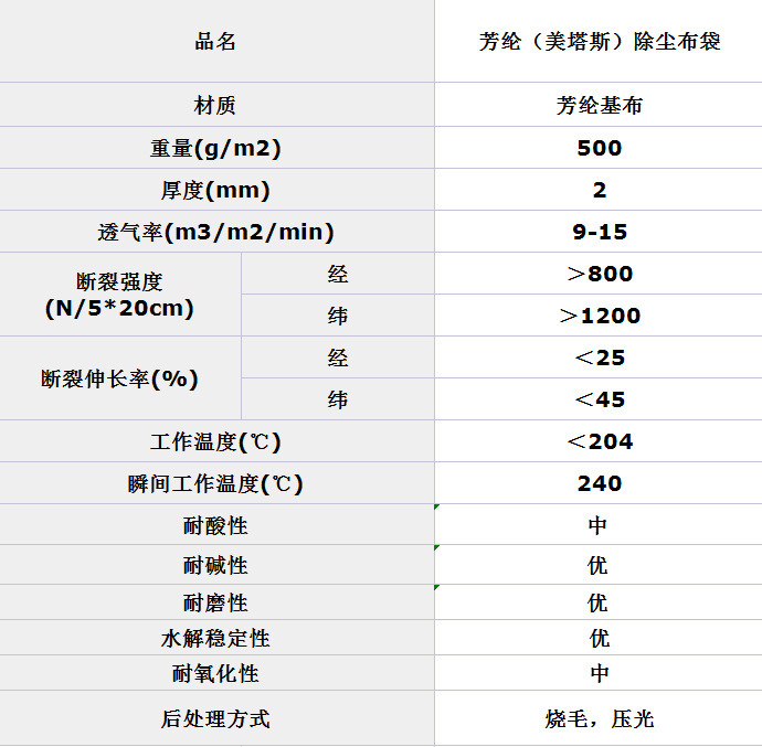 瀝青攪拌站美塔斯除塵布袋可在204度下連續(xù)使用,并可承受反復(fù)的250度瞬時(shí)波動(dòng)溫度,尺寸穩(wěn)定性好(250度時(shí)熱收縮率1%),防火性能好,400度時(shí)才分解碳化,不自燃也不助燃,低濃度的酸堿和大多數(shù)碳?xì)浠衔飳?duì)它無(wú)影響,良好的化學(xué)性,適用于瀝青混凝土攪拌瀝