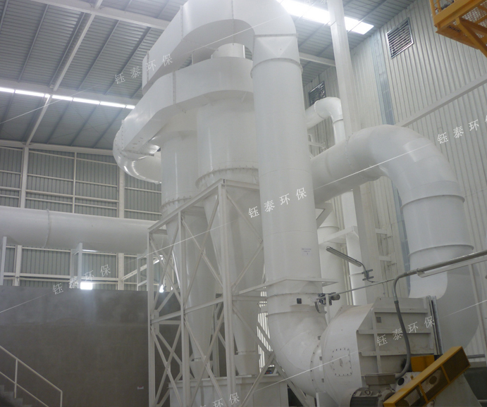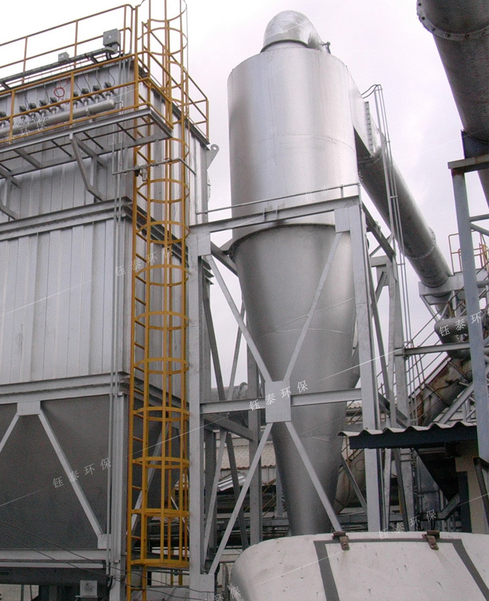 工業(yè)旋風除塵器又稱旋風過濾除塵器,主要用于去除廢氣中密度較大的非纖維性、非粘性顆粒??刹都酱笥?μm的粉塵,除塵效率50%~90%。因此,通常采用旋風除塵器作為廢氣送入主除塵器收集細粉塵之前的初級收集器或預(yù)過濾器。由于旋風除塵器殼體內(nèi)部幾乎沒有