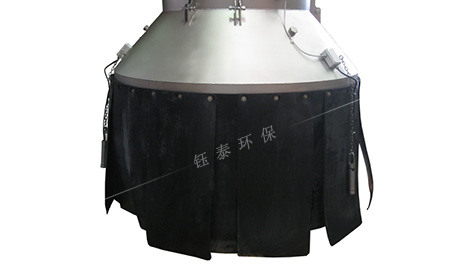 溜筒出口處的吸塵罩為多層結(jié)構(gòu),內(nèi)層為由皮帶膠組成的耐磨性能好、有一定相對硬度且具柔性的圍裙。皮帶膠圍裙主要用于緩解高速物料帶來的沖擊,緩沖高速氣流帶來的粉塵急速擴散。吸塵罩的皮帶膠圍裙也起支撐作用,可以避免由于負壓作用,外層帆布裙被吸扁,碰到料位檢測裝置導(dǎo)致誤報信號或者在溜筒出料口干擾物料流動。吸塵罩外層為雙重帆布圍裙,帆布裙的內(nèi)層長度需比皮帶膠圍裙大,需完全罩住皮帶膠圍裙。帆布裙外層比內(nèi)層略大,需覆蓋住溜筒出口處的物料。雙重結(jié)構(gòu)主要用于控制粉塵外揚及外部風(fēng)力作用將粉塵揚起擴散。整個吸塵罩在物料面和溜筒出口間構(gòu)成一個相對密閉的空間,防止粉塵外溢。