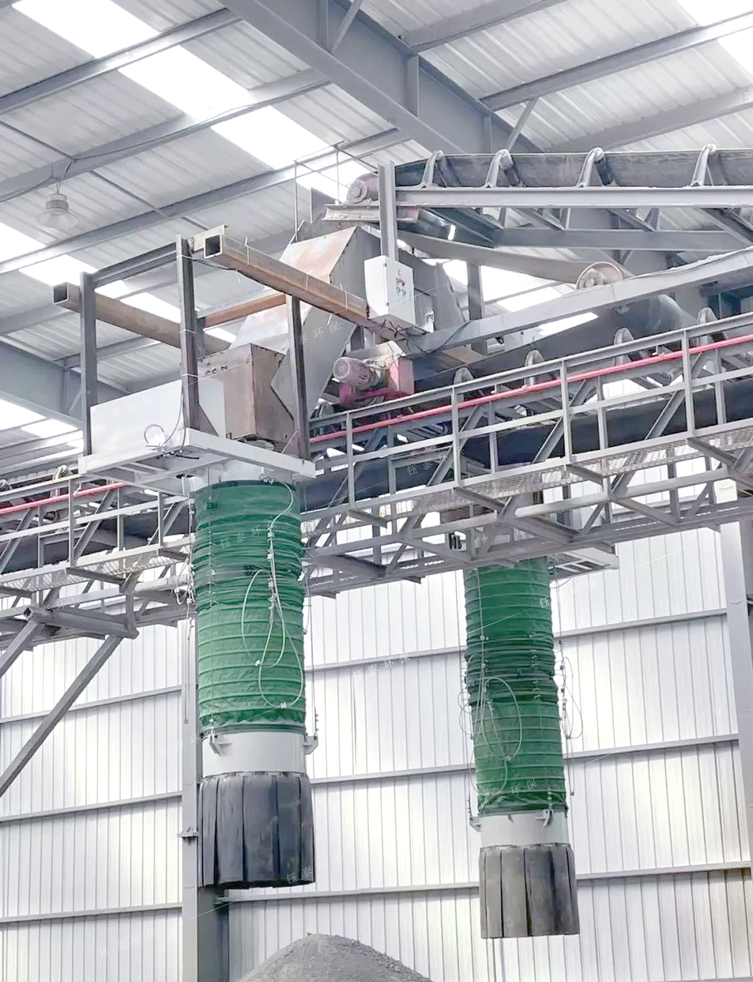 服務(wù)電話:13091153069(同微信)建材行業(yè)的砂石料皮帶輸送機卸料端的揚塵問題普遍存在,由于石料從高處的皮帶直接落在地上,其落差有3-5米高,有的甚至達(dá)到10米高,石料下落的過程中被風(fēng)吹的滿天飛,不僅造成嚴(yán)重的環(huán)境污染,而且造成物料的浪費。