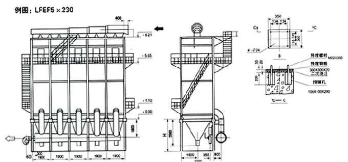 LFEF型高溫玻纖袋除塵器是針對高溫煙氣除塵開發(fā)研制的新產品,該機采用微機PLC控制,分室反吹,定時、定阻清灰,溫度檢測顯示等措施,使玻纖布袋除塵器在高溫廢氣除塵中能O、穩(wěn)定運行,煙囪出口排放濃度低于O規(guī)定的100mg/Nm3排放標準(可達≤50 mg/Nm3)。該設備可不停機分室換袋,操作簡單,安全可靠,運行費用低,是解決高溫煙氣除塵的有效設備,現該除塵器已被大型系列化,適用于礦熱爐、電石爐、回轉窯窯尾等高溫、高濕腐蝕性氣體的凈化。
